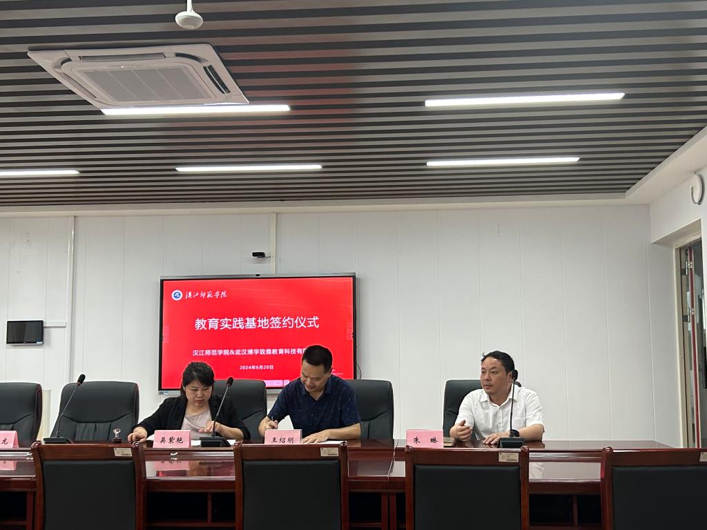 为积极推进beat365师范生教育实习工作,建设高质量的教育实践教学基地,6月22日下午,beat365手机版官方网站与武汉博学致雅教育科技有限公司在崇文楼B809隆重举行了共建教育实践基地的签约授牌仪式。beat365手机版官方网站教务处副处长朱琳、beat365手机版官方网站院长王绍明、副院长欧修龙、副书记戴俊、21级辅导员李朦及21级全体师范生参加此次会议。