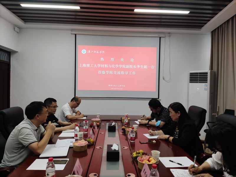 7月2日下午,上海理工大学材料与化学学院副院长李生娟、材料成型及控制工程系主任陈泽中、博士生导师曾祥琼等一行来beat365进行洽谈交流。交流会在崇文楼A503会议室举行,beat365手机版官方网站副院长欧修龙、化学与环境工程学院副院长丁宗庆、应用化学专业教师周佳、电气工程及其自动化专业程文杰博士参会,会议由副院长欧修龙主持。