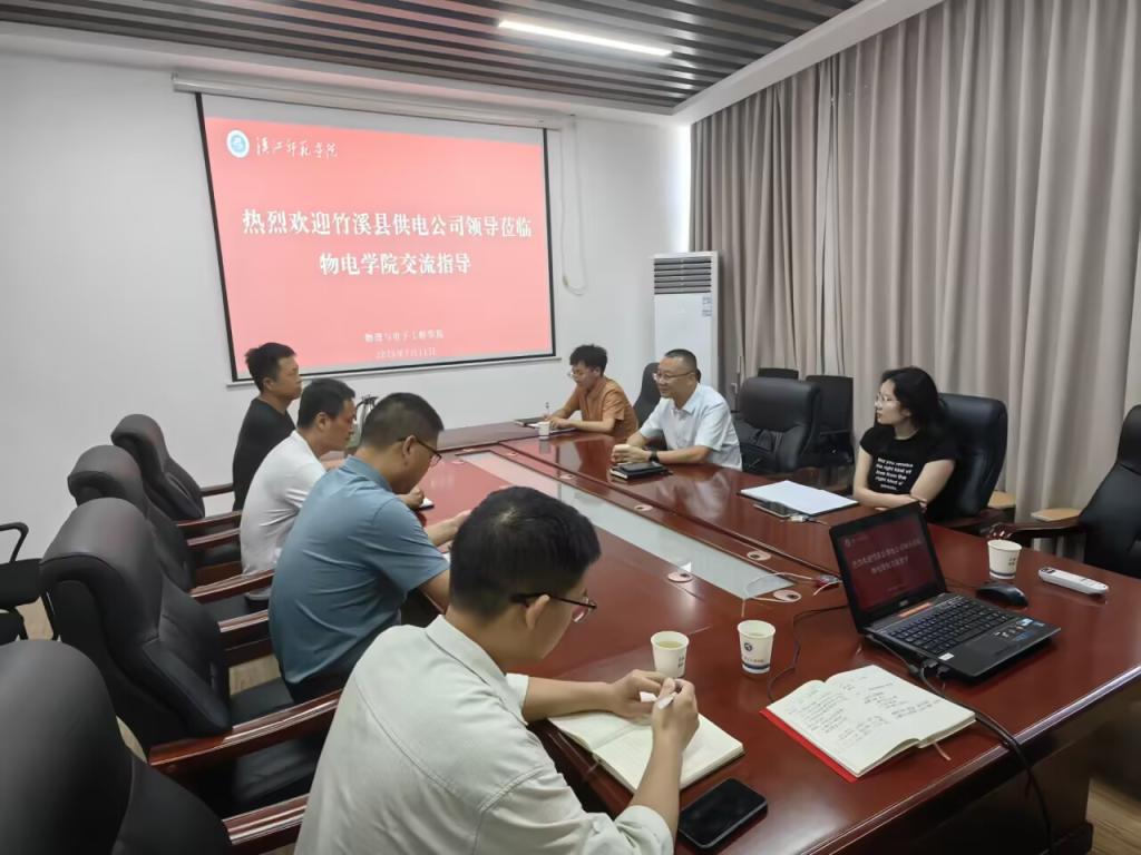 7月11日,国网竹溪县供电公司党委委员、副总经理张晏云以及公司技术骨干、beat365电气工程及其自动化专业2019级校友范国林一行到访物理学院。副院长刘锋及电气工程及其自动化专业教研室主任王汉斌等骨干教师参加座谈交流。