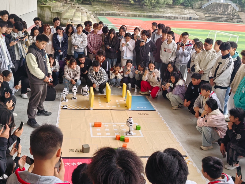 宣讲会结束后,中国机器人大赛获奖学生代表为无人机应用技术专业同学带来精彩的机器人展演。