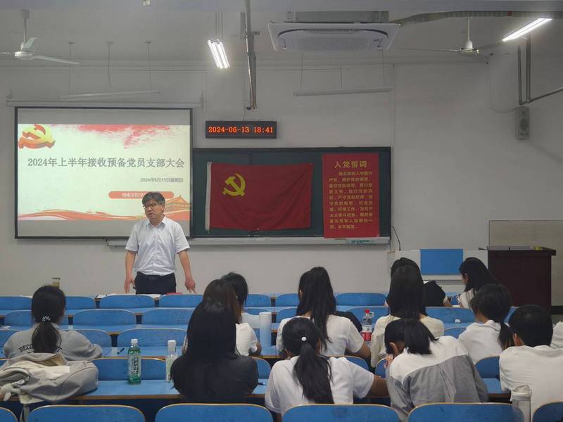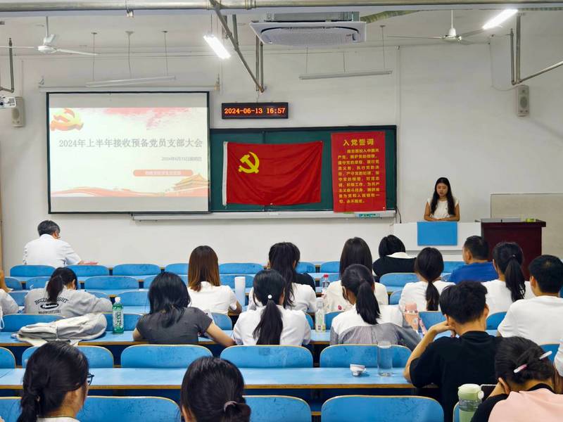 6月13日下午,beat365手机版官方网站2024年上半年预备党员接收大会在崇文楼B805召开,就接收胡蓉等12名发展对象为预备党员事宜进行讨论与表决。学生党支部全体党员和入党介绍人参加会议,会议由学生党支部书记王超然主持。