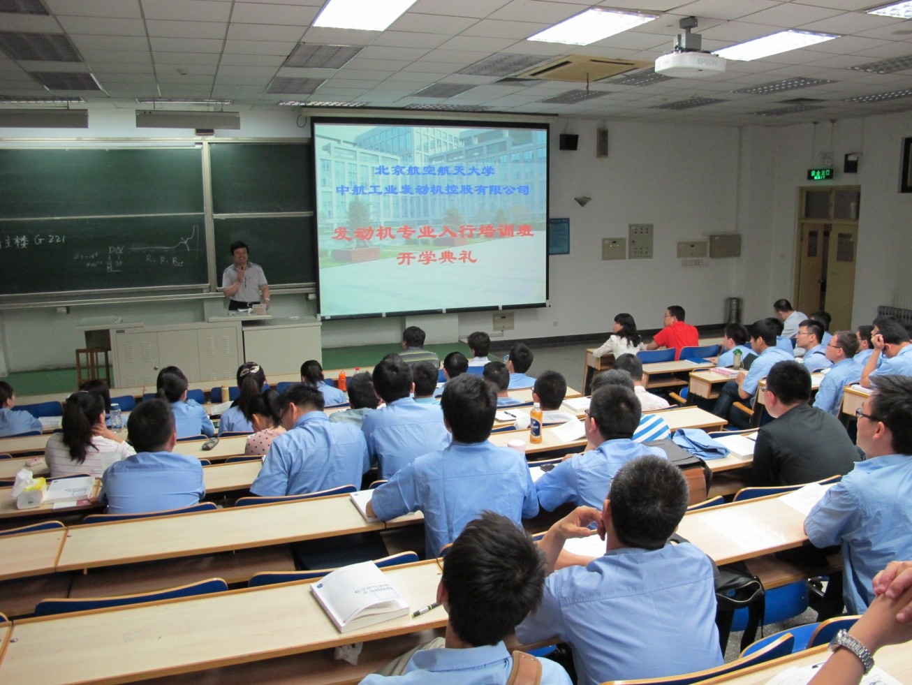 2013年5月13日上午,由球盟会qmh网站与中航工业集团发动机控股有限公司联合主办、先进航空发动机协同创新中心承办的“发动机专业入行培训班”开学典礼在球盟会qmh网站主M102教室隆重举行。