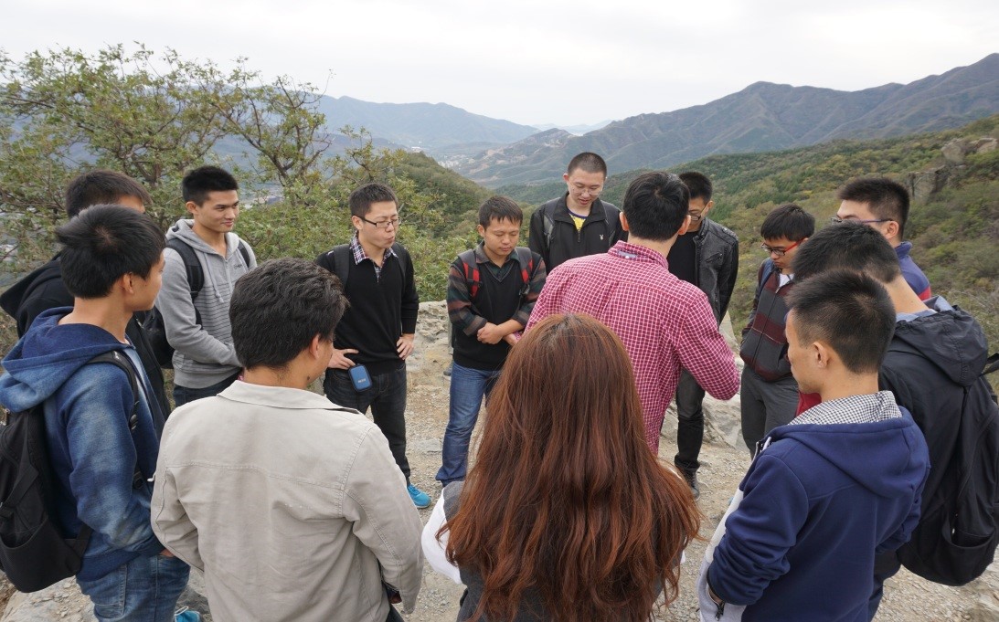 正如郁达夫在《故都的秋》中所说:秋天,这北国的秋天,若留得住的话,我愿把寿命的三分之二折去,换得一个三分之一的零头。北京的秋天是最美的季节。一进入景区大家就深深地感受到了优美的自然风光,对登山活动跃跃欲试了。不过为了给先行上山进行活动设置的同学留出足够时间,并且充分调动大家的积极性,大家先在山脚下进行了热身小游戏,同时由研会文艺部负责人向参赛人员宣读了比赛规则。本次比赛行进路线为:秀峰古刹-地震台遗址-八卦碑阵-千年登山古道-鹫峰山庄-消债寺-朝阳观音洞-盘景轩—望月峰-鹫峰主峰,比赛过程中需要在随机的景点中搜寻队伍所属标识记号,根据完成速度还有相应的加分,由此可见此次越野登山赛十足的挑战性和趣味性。