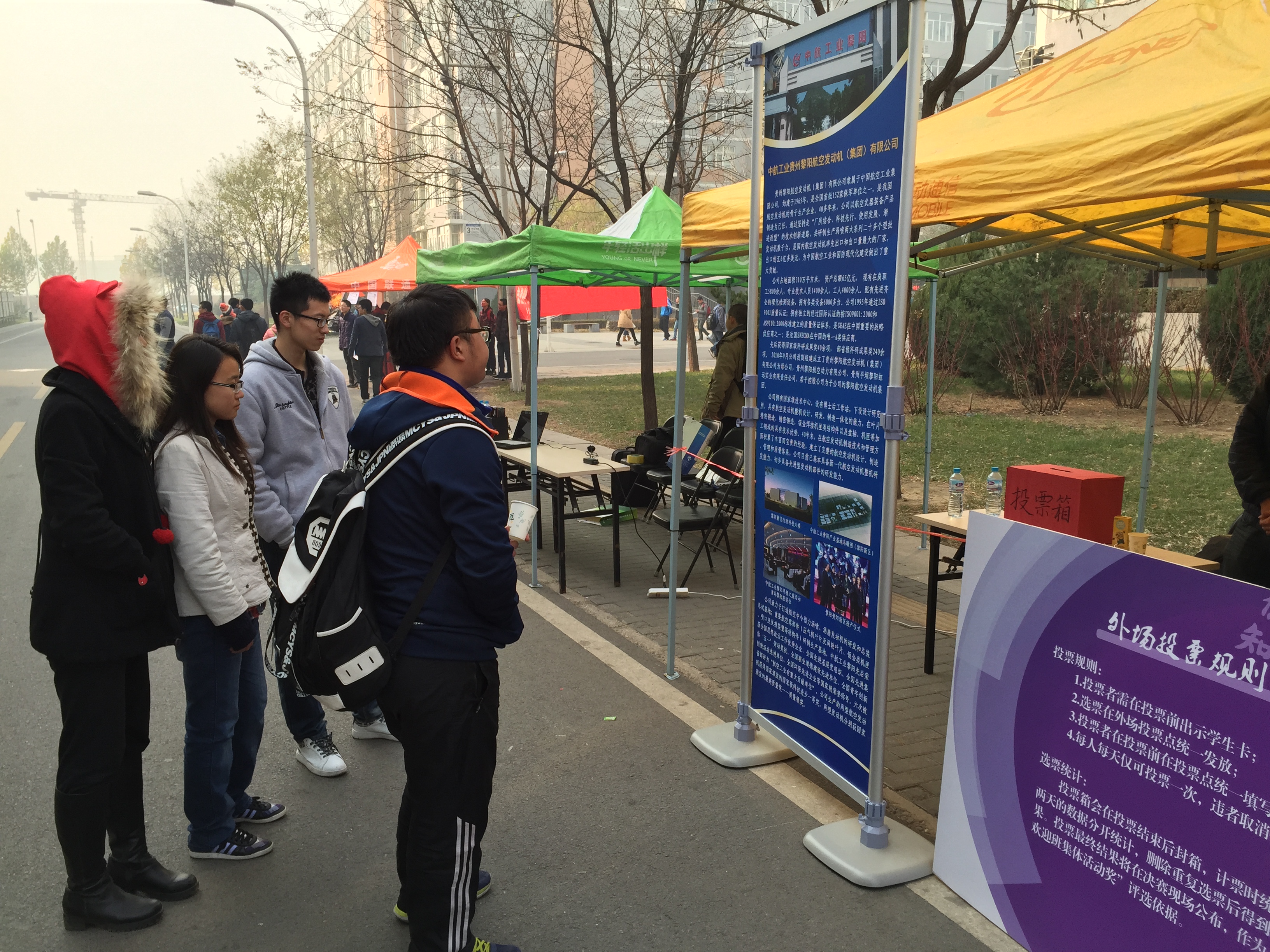 “中航黎阳杯” 球盟会qmh网站2014级本科新生最佳班集体活动答辩赛外场展示于11月19日与20日在沙河校区1,4号学生公寓楼之间开展,参加本次外场展示的是晋级决赛的十四个班级。