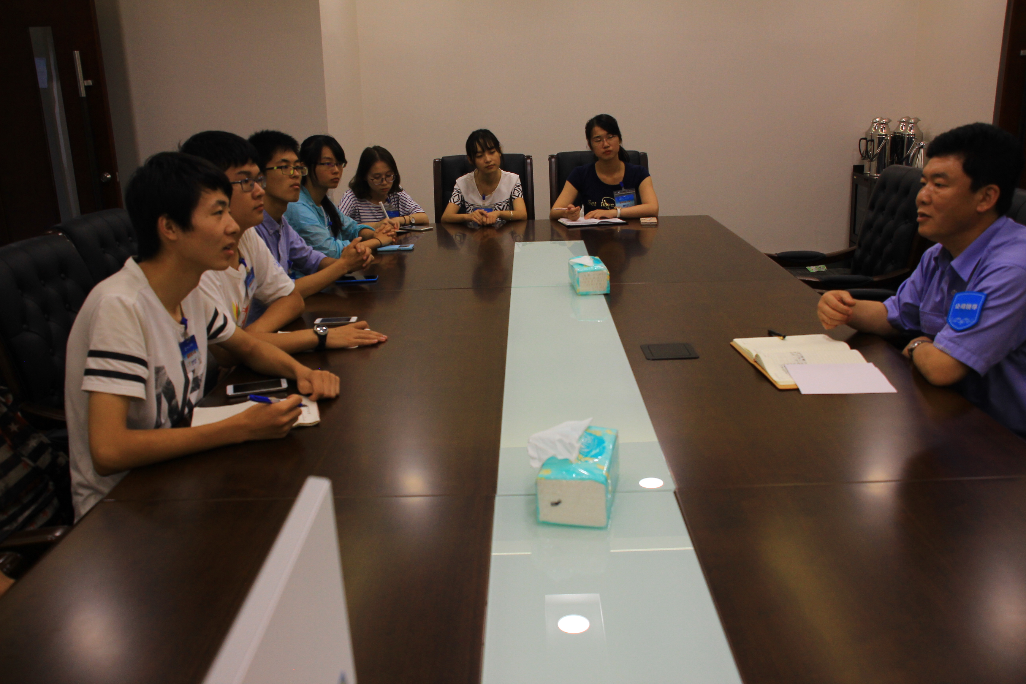 下午13点15分,我们来到会议室对专管人力资源的吕蓬副总经理进行采访交流。吕总就“大国工匠的古今变化”、“不拘一格降人才”和“青年员工的发展情况”三点向我们做了清晰的介绍。吕总以学长的身份重申:新一代的动力人,应当摆脱简单的“价格交换”,而更应当注重于价值的体现。“善达周遭、信达周遭”的是吕总反复强调的信条,他希望我们北航人,能够明白自己要成为什么样的人,并明确努力的方向。