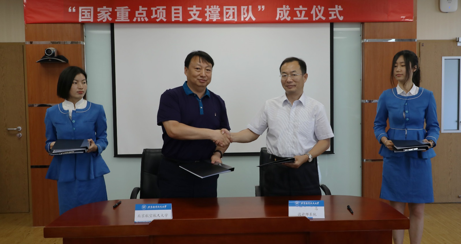 程荣辉专职所长介绍了设立“支撑团队”的重要作用及运行机制。他表示,支撑团队成立后要全面参与重点项目的研制,共同解决研制中遇到的问题,以加快推进重点项目研制工作。随后,陆海鹰主任和丛佩红书记分别与团队负责人丁水汀教授、洪杰教授和王延荣教授签署了合作协议。杨锐副总指挥和副校长房建成院士共同为支撑团队揭牌,程荣辉专职所长向三个支撑团队的15名核心成员颁发了聘任证书。