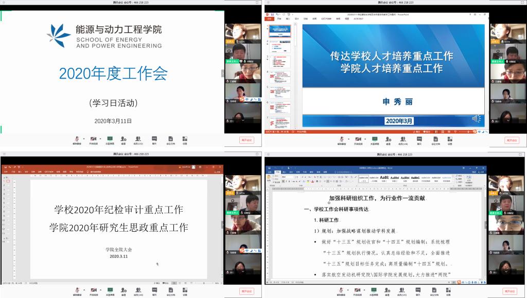 接着,学院各位主管领导传达了学校工作会议上各位校领导的讲话精神和内容,同时介绍了学院2020年度各项重点工作。2020年度,学院将在做好疫情防控工作的前提下,做好延期开学期间教学工作;提升课程品质;完善育人机制;加强师资队伍建设;完成新专业申报和学科评估工作;强化有组织的科研工作;加强实验室建设与管理;完善学生思政工作体系;完成沙河实验室的建设和学院的搬迁工作;积极参加发动机大楼规划工作;完成人事制度改革等重点工作。
