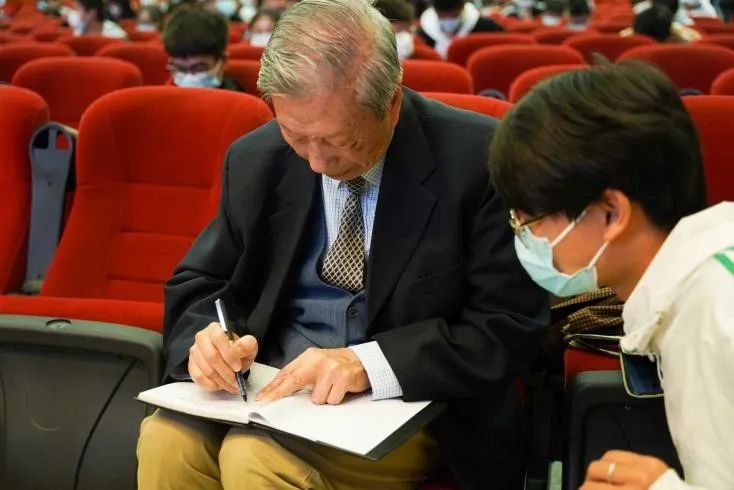最后,刘大响院士亲切赠语:仰望星空、放飞梦想、脚踏实地、砥砺前进。讲座结束后,刘大响院士与同学们合影留念,并给同学们逐一认真写下寄语。