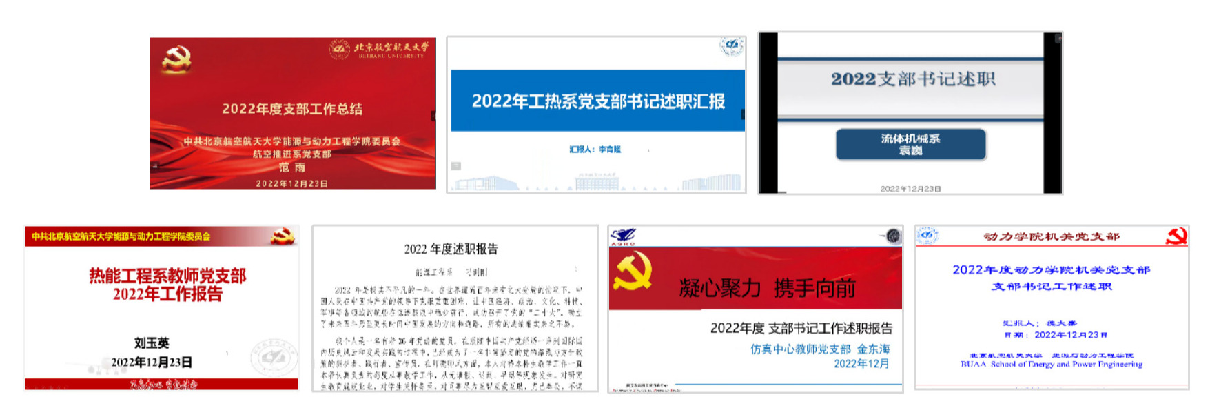 航空推进系主任石多奇、流体机械系主任柳阳威、热能工程系主任王娟、能源工程系主任刁训刚、仿真中心主任金捷、教学实验中心主任刘志伟,从立德树人、人才引育、科学研究、行政管理、疫情防控等方面分别进行述职。
