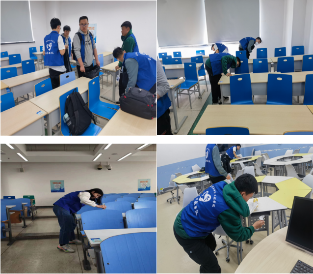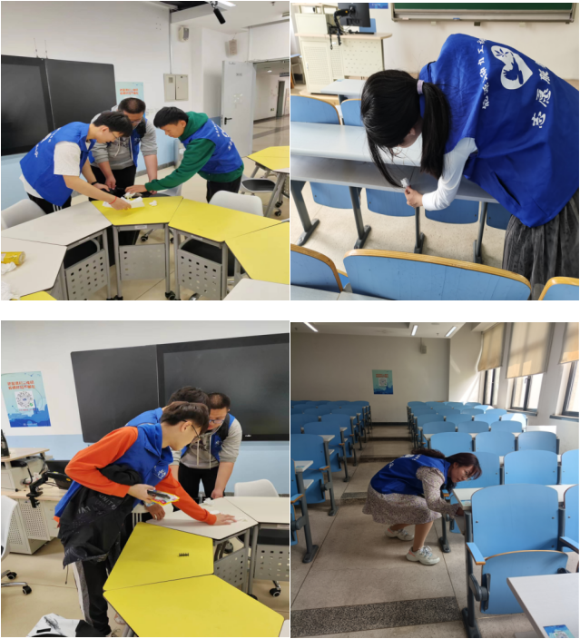 同学们在活动过程中认真仔细,俯身查看每一个桌子的桌兜,并将垃圾进行清理。志愿者付出了劳动与汗水,换来了教室的清洁和满满的成就感!