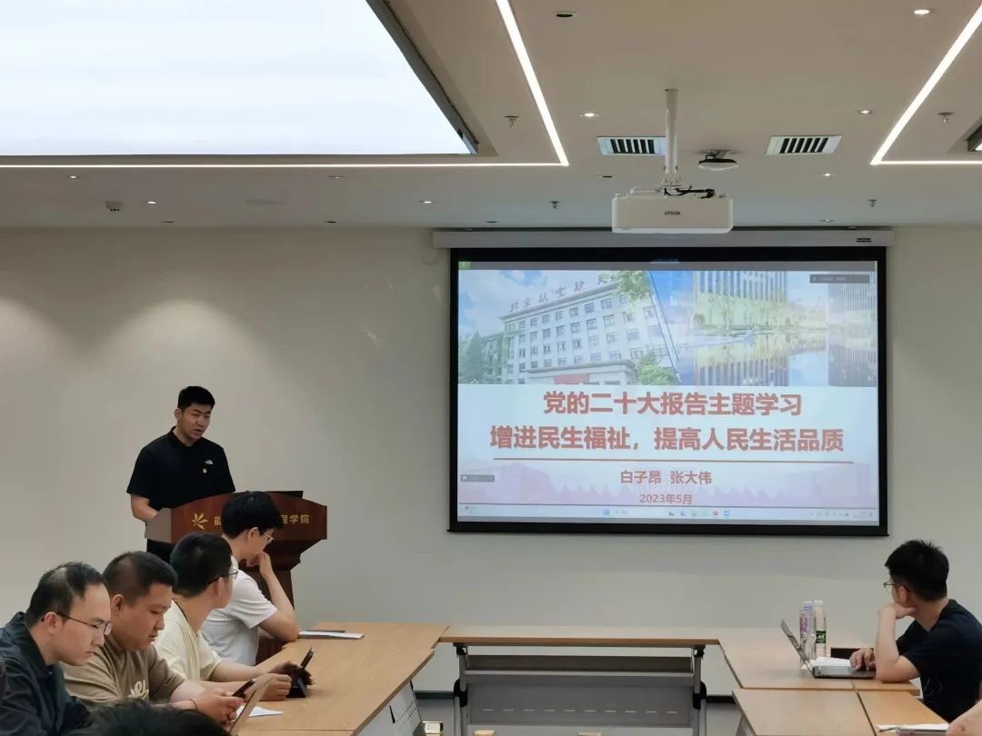 党支部书记带领大家深入学习领会党的二十大报告原文。首先,系统梳理了领学章节内容的发展脉络,学习分享其历史逻辑,理论逻辑和实践逻辑,深入理解“五位一体”总体布局和“四个全面”战略布局,深刻领悟“两个确立”的决定性意义,增强“四个意识”、坚定“四个自信”、做到“两个维护”。其次,结合我国取得的举世瞩目成就,结合所学航空动力专业,结合北航事业发展和身边优秀事迹,深入介绍领学章节,加深大家对报告内容的理解。最后,号召同学们从党的二十大精神汲取成长成才养分,传承空天报国精神,争做强国时代新人。