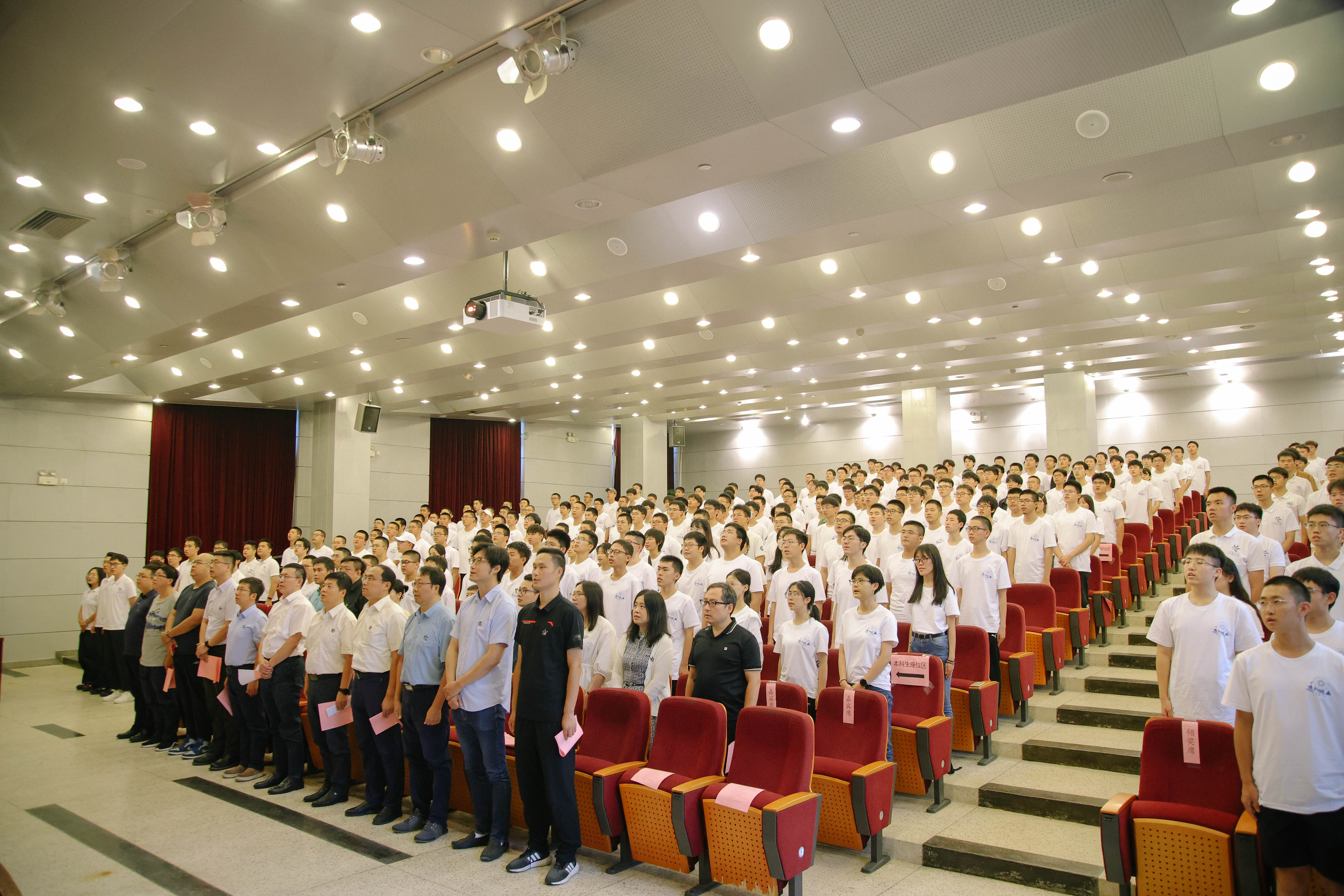 学院领导老师为新生代表授予院徽。全体新生将院徽佩戴在胸前,正式成为动力学院的一员,初心如磐,使命在肩。