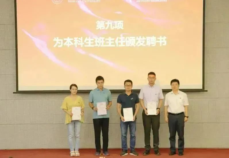 副院长孙大坤宣读新聘任本科生班主任名单,院长闫晓军为班主任颁发聘书,把好学生们成长成才的关键。