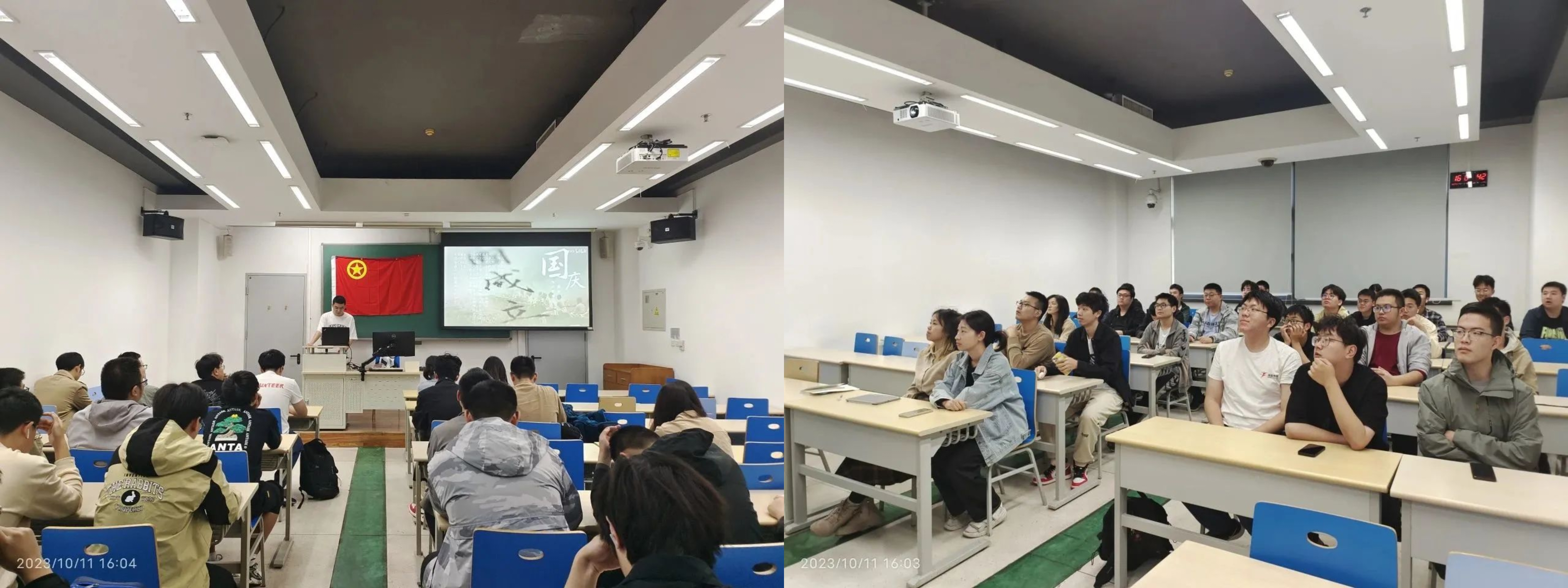 210431团支部通过观看双节祝福视频与亚运视频,展开学习了相关党的理论和党的历史,同时回顾了开国大典上毛主席的庄严宣告,通过一系列活动进行爱国主义教育学习。