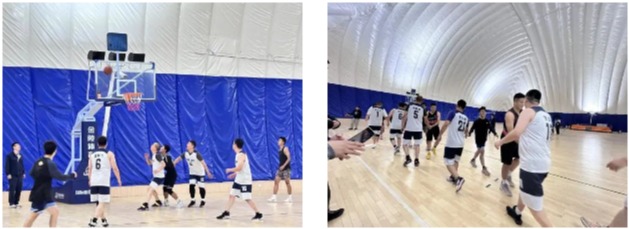 “回防!盯住!传球!投了!好!”中国航发沈阳黎明航空发动机有限责任公司的室内运动场里,不断响起指挥声与庆祝声,动力学院的学生正在与中国航发黎明的部门领导职工代表进行激烈的篮球友谊赛。