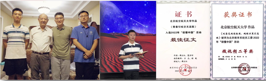 红色工程师的血脉在心中流淌,在讲述中赓续。为讲好铸心故事,他采访动力学院高歌教授,讲述北航第一个国家发明一等奖——沙丘驻涡火焰稳定器的故事,并在中国教育电视台演讲录制,获教育部关工委全国最佳征文等荣誉。