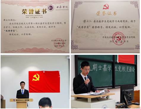他深知红色工程师的内核是“红”。他争当思政先锋,第一时间申请入党,在校、院两级党校均被评为优秀学员;他注重薪火传承,担任党校总干事助理,培养积极分子200余人,获评优秀干部。