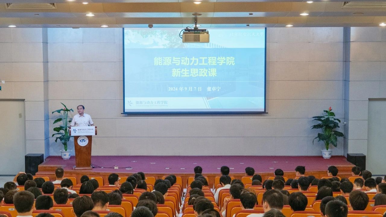 院党委书记董卓宁为新生讲授思政课,系统介绍航空发动机的行业背景,回顾学院“三代人”的奋斗历程,详细介绍学院发展现状。希望同学们能够,严守三条底线,养成三个习惯,培养三种能力,矢志航空报国,学院将为新生提供一流平台和机遇,鼓励新生在航发事业中成就人生理想,以青春之力书写挺膺担当的青春篇章。