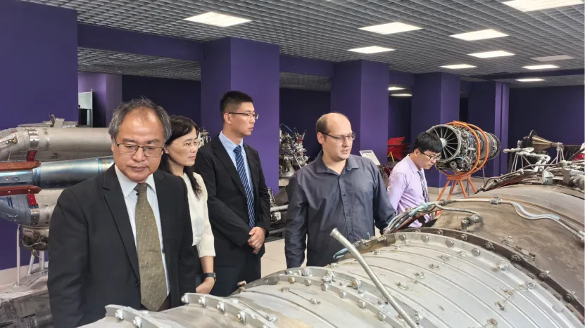 双边研讨会期间,莫斯科航空学院相关专业教学和科研人员陪同北航代表团参观了飞机机库和航空发动机陈列室,并进行了专业细致的现场讲解。最后,能源与动⼒⼯程学院副院长邱璐向莫斯科航空学院赠送了北航⽂化纪念品,双⽅均期待未来密切的合作。