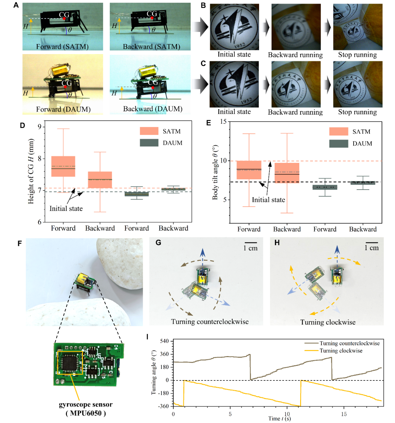 面向大型机械装备结构损伤检测、信息获取等任务需求,本次研究集成验证了BHMbot-B机器昆虫携带摄像头、姿态传感器等任务负载的功能。在无线控制条件下,BHMbot-B机器昆虫可搭载微型摄像头采集高清图像;在集成陀螺仪元件后,BHMbot-B可实时回传自身姿态角参数,为后续开展基于姿态角参数的闭环控制奠定了基础(图4)。