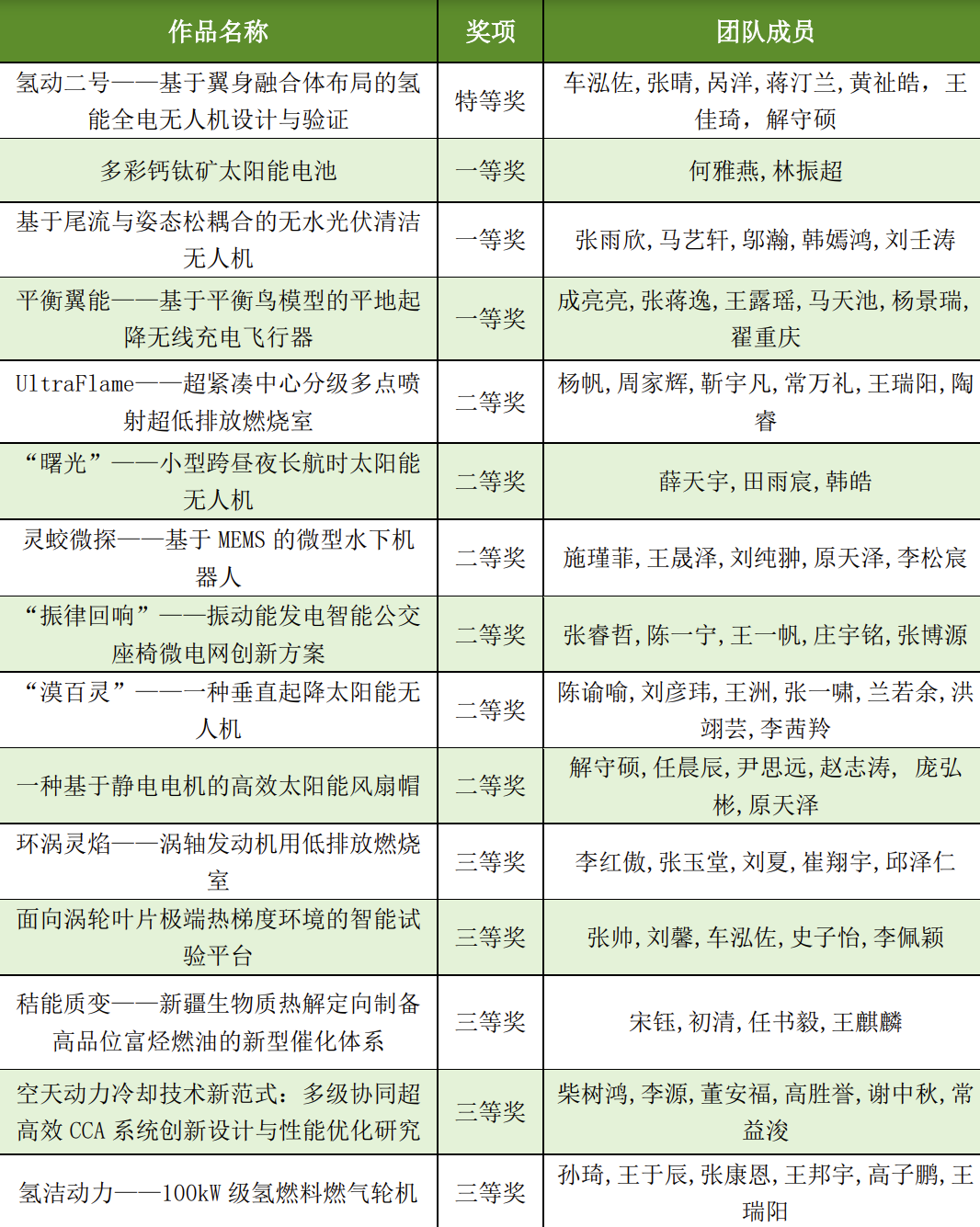 动力学院学子共有159个项目参加本届“冯如杯”的激烈角逐并斩获优异成绩。主赛道本科生制作组二等奖8项、三等奖12项,主赛道本科生论文组一等奖1项、二等奖4项、三等奖8项,主赛道研究生制作组三等奖2项,红旅赛道铜奖1项,创意赛道一等奖1项、二等奖3项、三等奖4项。