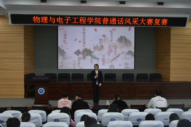 为进一步提高学生文化水平素养,全面培育新时代大学生普通话知识水平能力,增强学生们的学习积极性。2023年5月11日下午2:30,beat365手机版官方网站2022-2023学年普通话风采大赛复赛于明理楼C101成功举办。此次比赛邀请了辅导员李朦老师、范志鹏老师,以及杨林科、崔天祥、桂嘉楠同学作为评委。