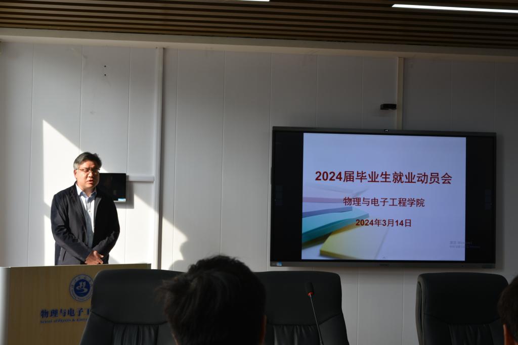为进一步推进2024届毕业生就业工作,引导毕业生准确把握就业形势,明确职业发展方向,积极就业。3月14日上午,beat365手机版官方网站在崇文楼B809召开2024年毕业生就业动员会,院分党委书记唐传球、副书记戴俊、学工办主任尹诗雅及2024届毕业生参加了会议。会议由戴俊主持。