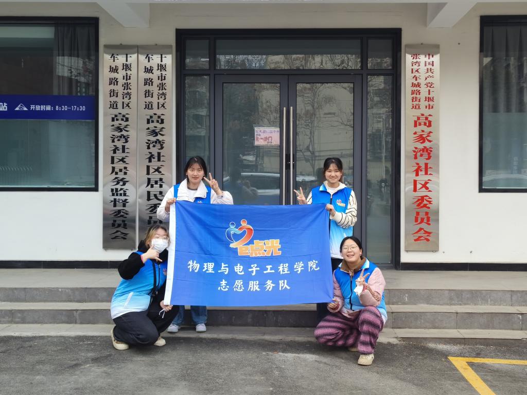 志愿服务源于心,献出爱心在于行。3月16日,物电学院“e点光”志愿服务队两批志愿者分别前往十堰市高家湾社区和十堰市社会组织孵化基地开展“学雷锋·爱心周末”志愿服务活动。