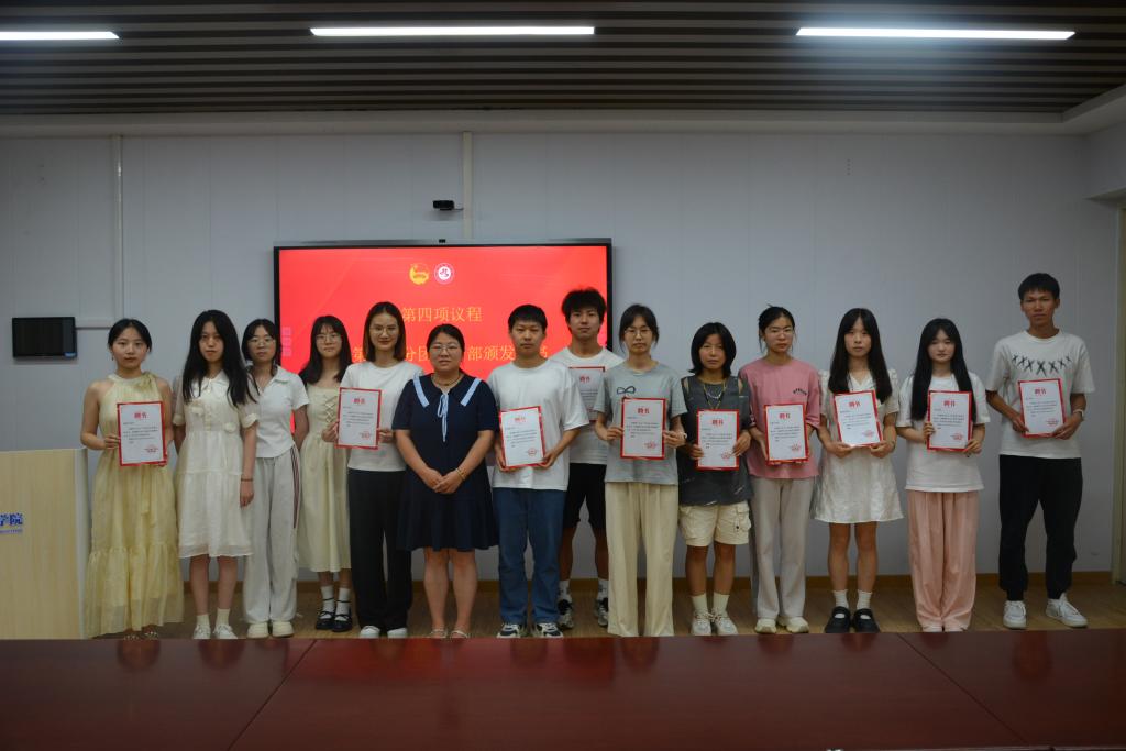 会后,院分团委负责人李朦为第六届团委学生干部、2023-2024年度优秀团干、优秀团员颁发聘书和荣誉证书。