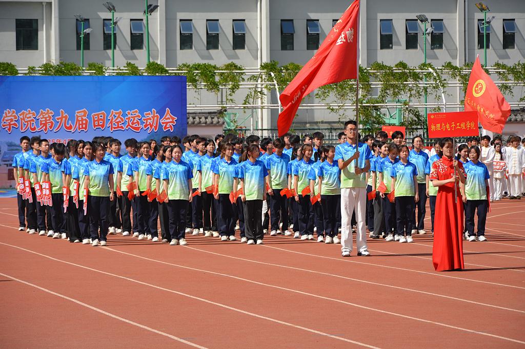 4月23日下午,运动会开幕式在校田径场正式拉开帷幕。伴随着激昂的旋律,物电学院学生方阵步入会场。