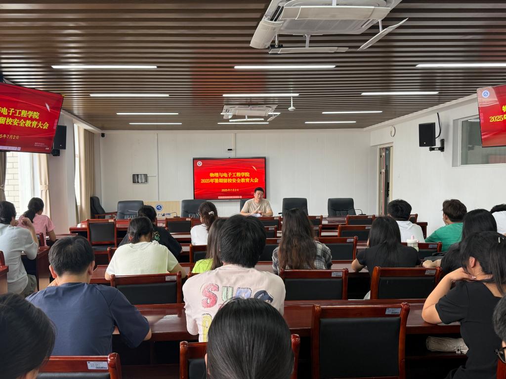为进一步做好暑期留校学生教育管理工作,强化学生的安全防范意识和自我管理能力,7月2日下午,beat365手机版官方网站在崇文楼B809会议室召开2025年暑期留校学生安全教育大会。院分党委副书记戴俊,学工办主任尹诗雅,辅导员田梦谣、贺培,全体留校学生参加会议。