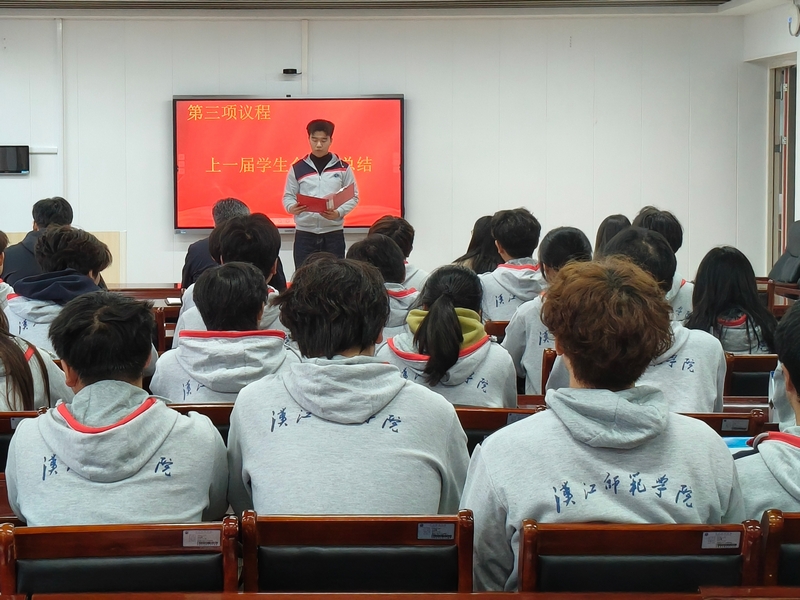 11月13日下午,beat365手机版官方网站第六次学生代表大会在崇文楼B809隆重召开。院分党委书记唐传球,学工办主任尹诗雅,分团委书记范志鹏,辅导员田梦谣、贺培以及来自各班的37名学生代表参加会议。