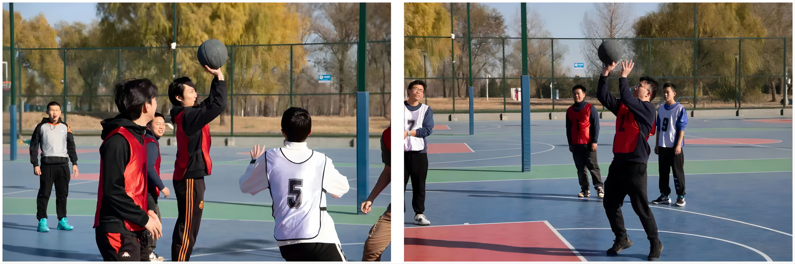 为丰富校园体育文化生活,加强师生间的沟通与交流,培养团队协作精神,增强学院凝聚力,qmh球盟会亚博于2023年11月24日12:30在沙河校区西区篮球场举办了一场师生篮球友谊赛,比赛的双方分别是教师队和220411与220421班学生组成的联合队。