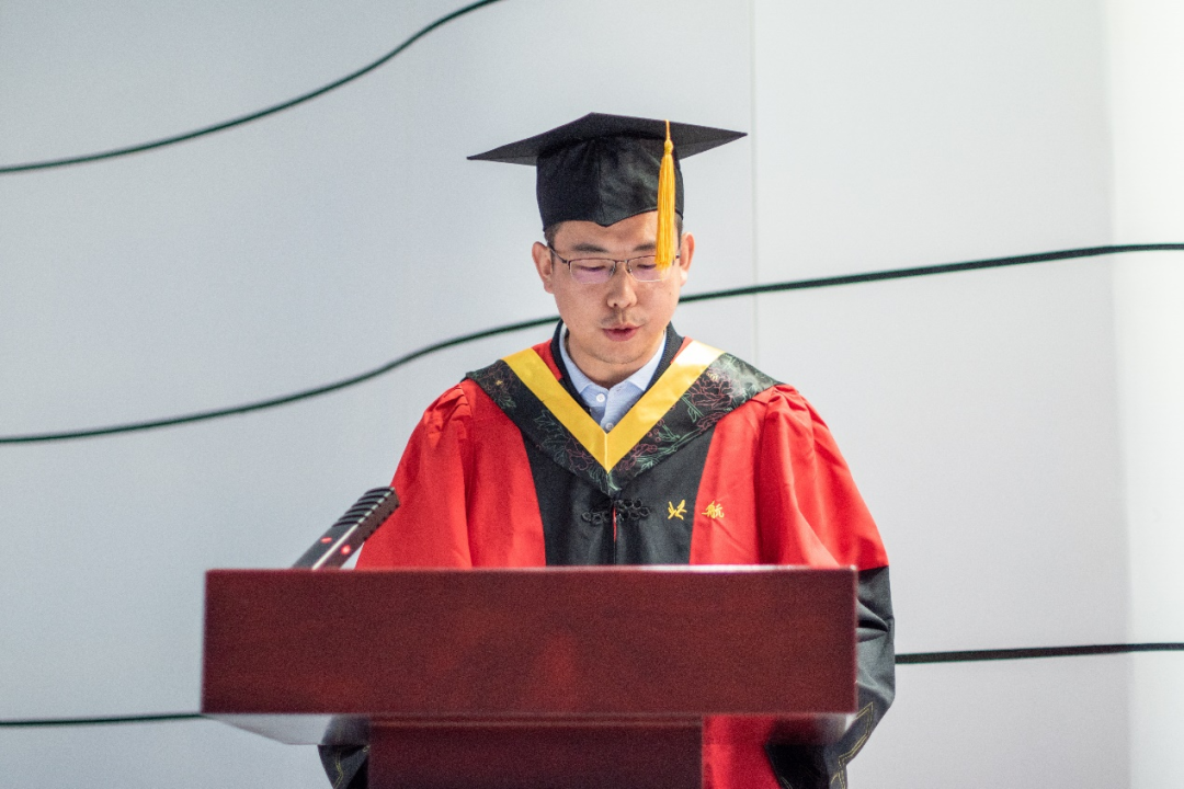 毕业生代表张芊同学,回顾了在qmh球盟会亚博的求学历程,讲述了她在仰望星空中融入“大我”成就“小我”,探索“未知”开启“真知”,追寻初心,勇担使命的故事。