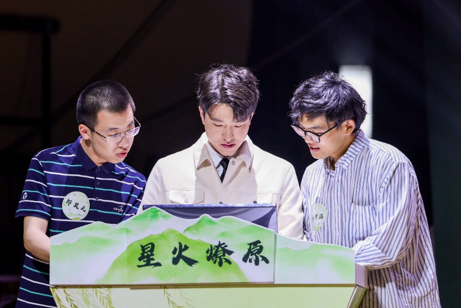 第二轮是“狭路相逢”抢答环节,设置了诗词填空题、十二宫格题等多类型题目,难度不断提高,成绩最好的两支队伍进入“飞花令”环节。这既是智慧的比拼,又是速度的角逐。四支队伍你追我赶,难解难分,作为队长的王轶涵带领队员稳扎稳打、步步为营,涌现出一个又一个精彩瞬间。最后,星火燎原队成功进入飞花令环节!
