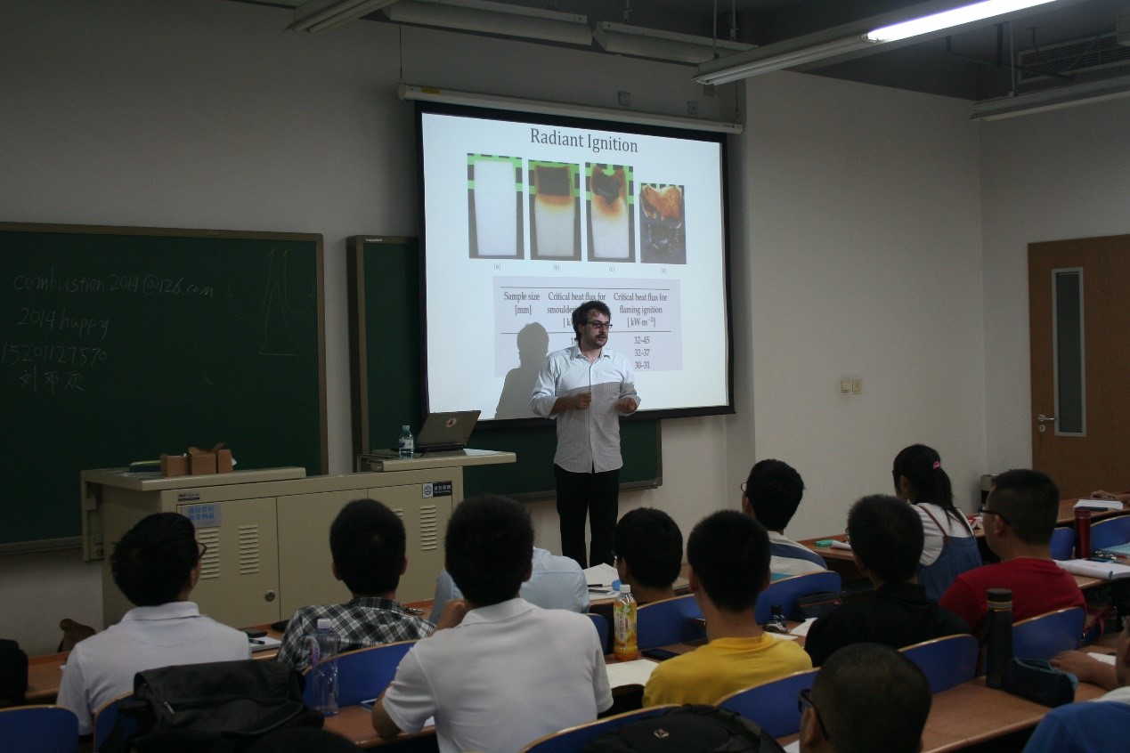 2014年7月21日至26日,应球盟会qmh网站qmh球盟会亚博的邀请,英国帝国理工学院Guillermo Rein教授前来学院进行学术访问。访问期间,Rein教授为我院本科生与研究生开设了“燃烧基础”全英文引智课程。