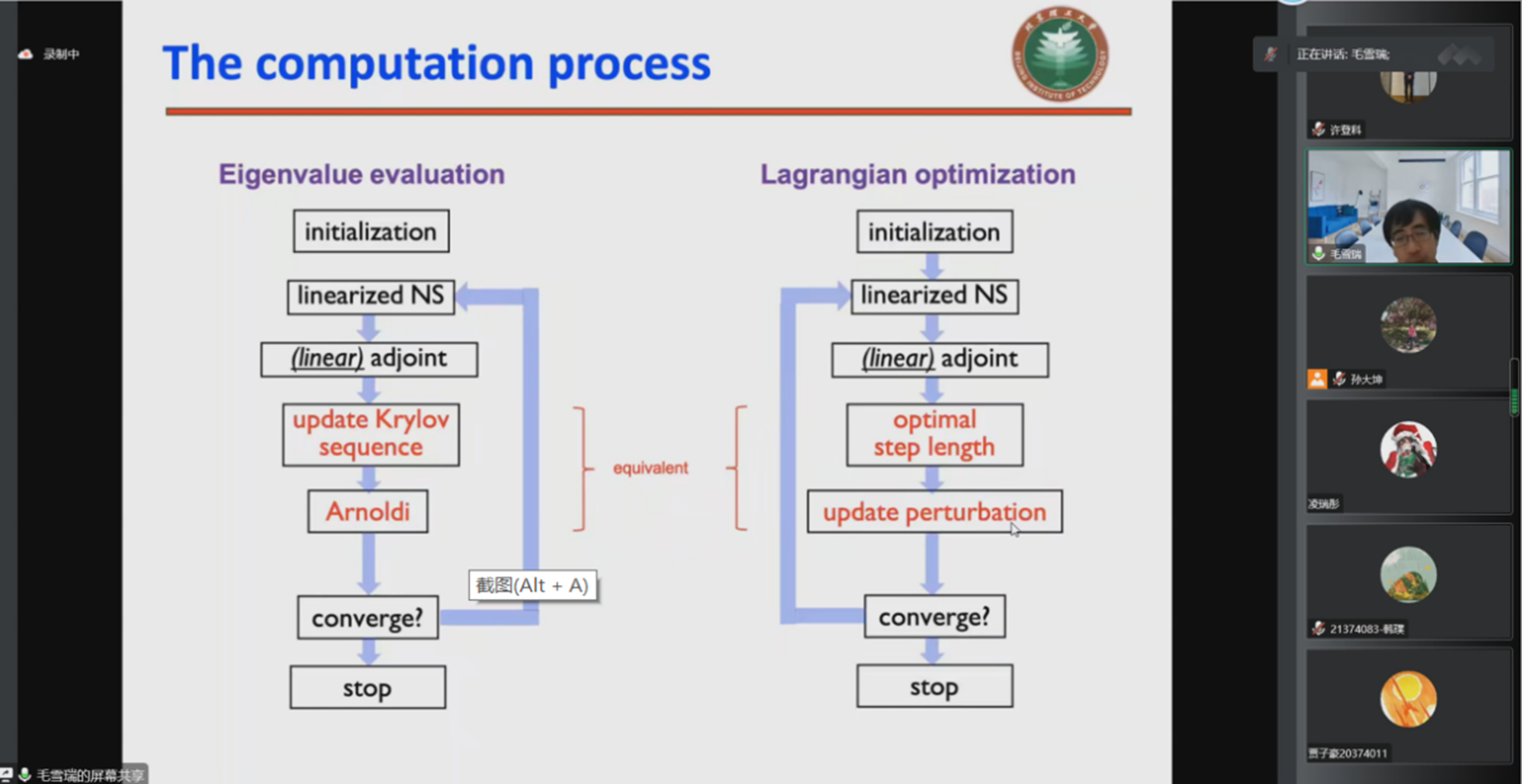 2022年12月9日北航qmh球盟会亚博,能动大讲堂特邀北京理工大学长江学者毛雪瑞教授在线上分享他关于流动稳定性与边界扰动分析的感悟和体会。