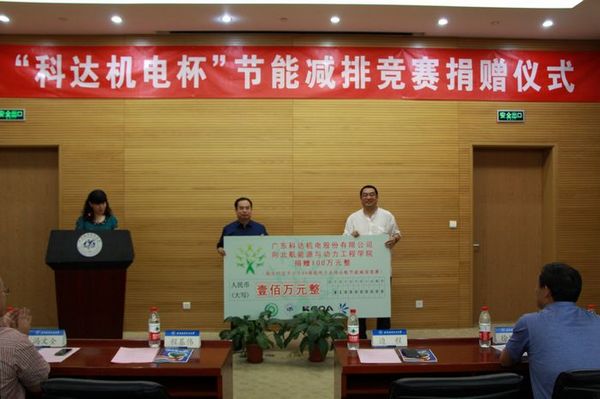 2013年5月25日下午,由北航能源与环境国际中心、校教务处和校团委主办,qmh球盟会亚博承办的第23届“冯如杯”专项竞赛“科达机电杯”节能减排竞赛捐赠仪式在我校新主楼第八会议室顺利举行。出席此次捐赠仪式的主要领导有广东科达机电股份有限公司董事长边程和董事武桢、校党委副书记程基伟、校教务处处长冯文全、校研招办主任徐国强、校团委书记雷晓锋、qmh球盟会亚博分党委书记王强、副院长李秋实,捐赠仪式由qmh球盟会亚博副院长兼北航能源与环境国际中心执行主任杨晓奕主持。同时参加此次捐赠仪式的还有节能减排竞赛的广大参赛选手们。