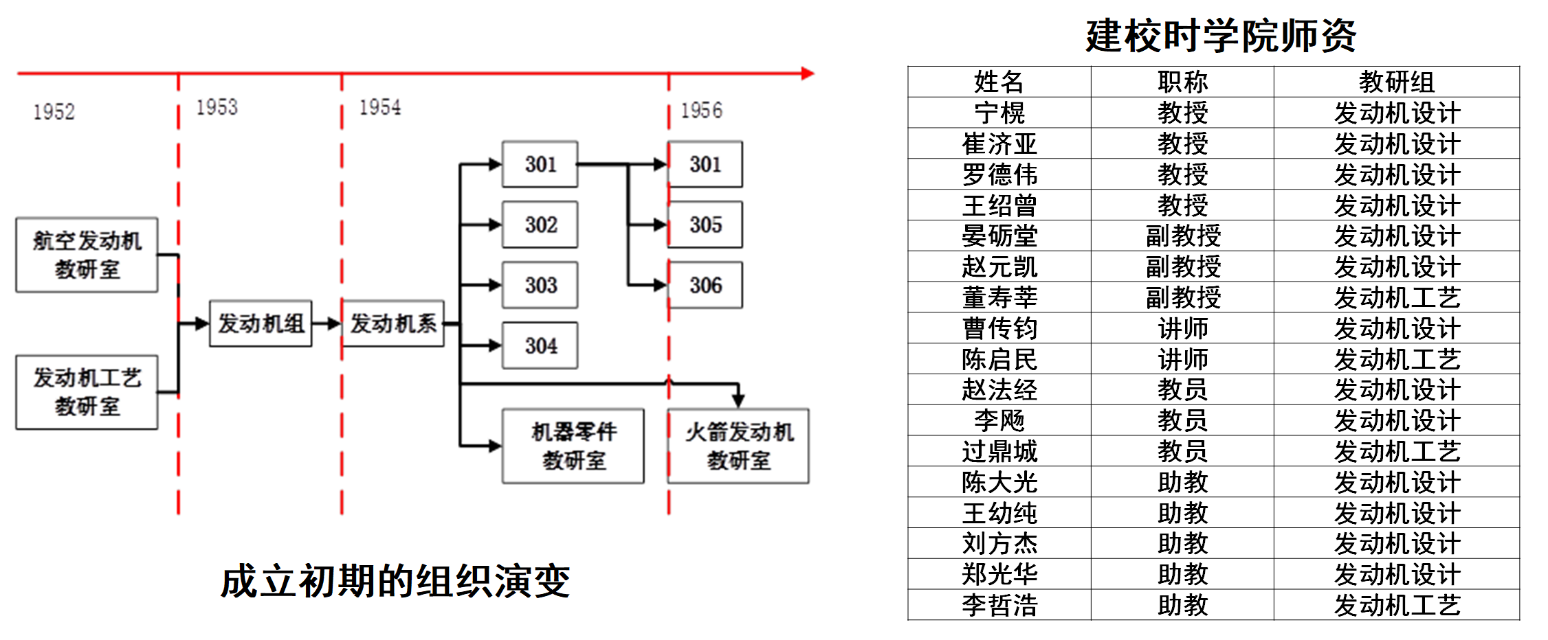 1952年10月25日,北京航空学院成立,发动机系(qmh球盟会亚博前身)是北航最早成立的两个系之一。从最初的发动机教研室发展到发动机组,再发展到发动机系,形成了系下设立发动机原理(301)、发动机工艺(302)、发动机构造(305)、热工(306)和火箭发动机设计等多个教研室的基本格局。